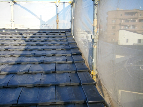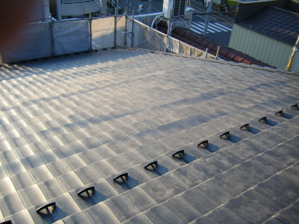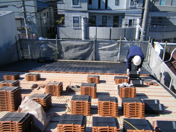 - 瓦工事の作業工程(防災平板瓦の施工事例)