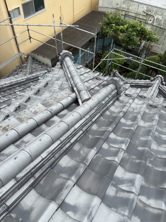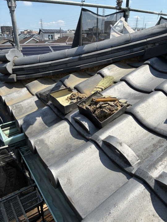 瓦工事の作業工程(防災平板瓦の施工事例)