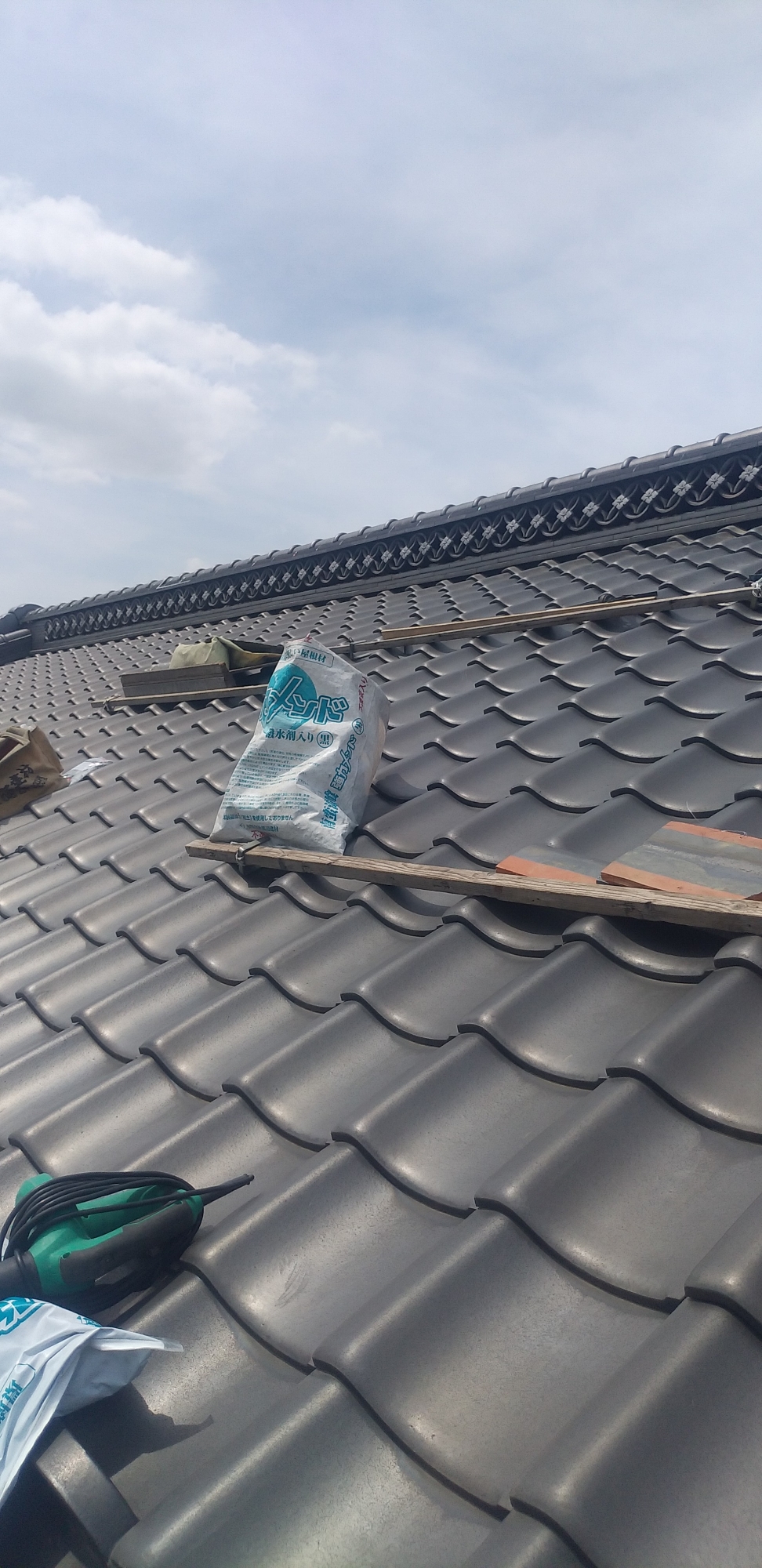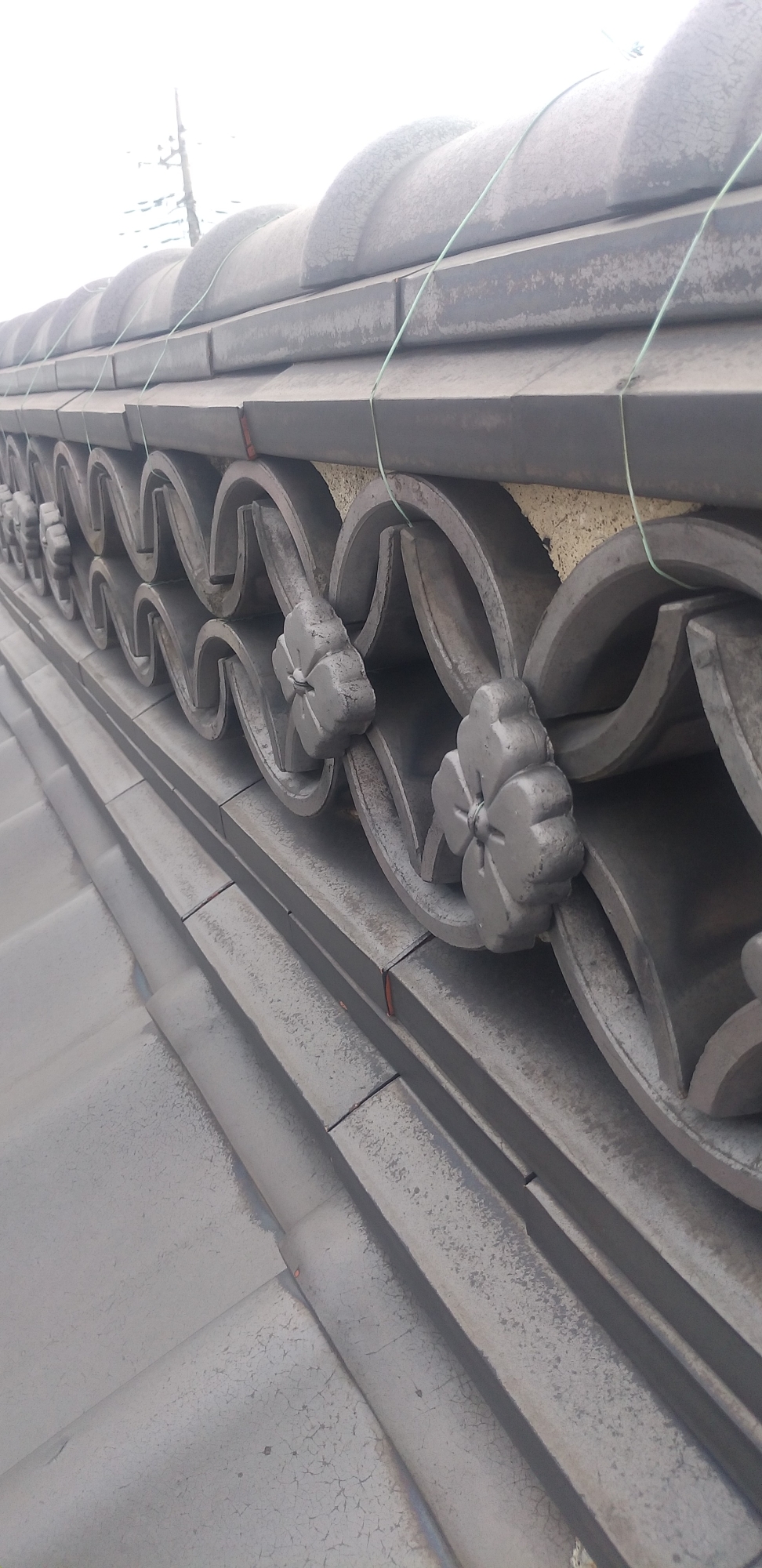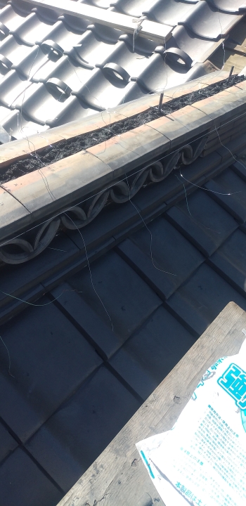 陸棟家紋付け直し及び棟込瓦上部既存瓦積み直し工事